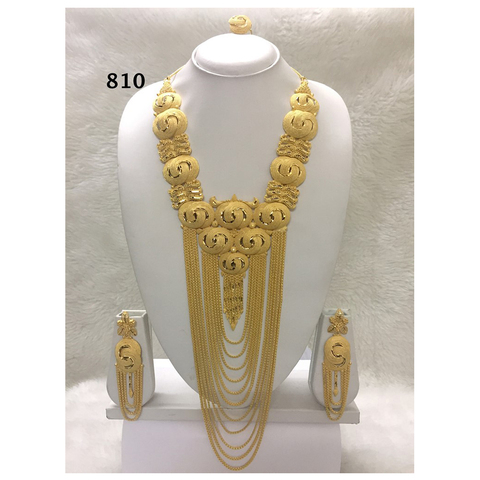 ロングゴールデンメッキアフリカブライダルセットデザインジュエリー